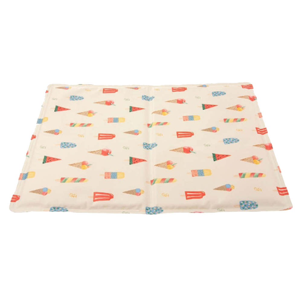 Tapete refrescante para cães, com dupla face: verde liso ou com ilustrações de gelados. Para manter os patudos frescos nos dias mais quentes!