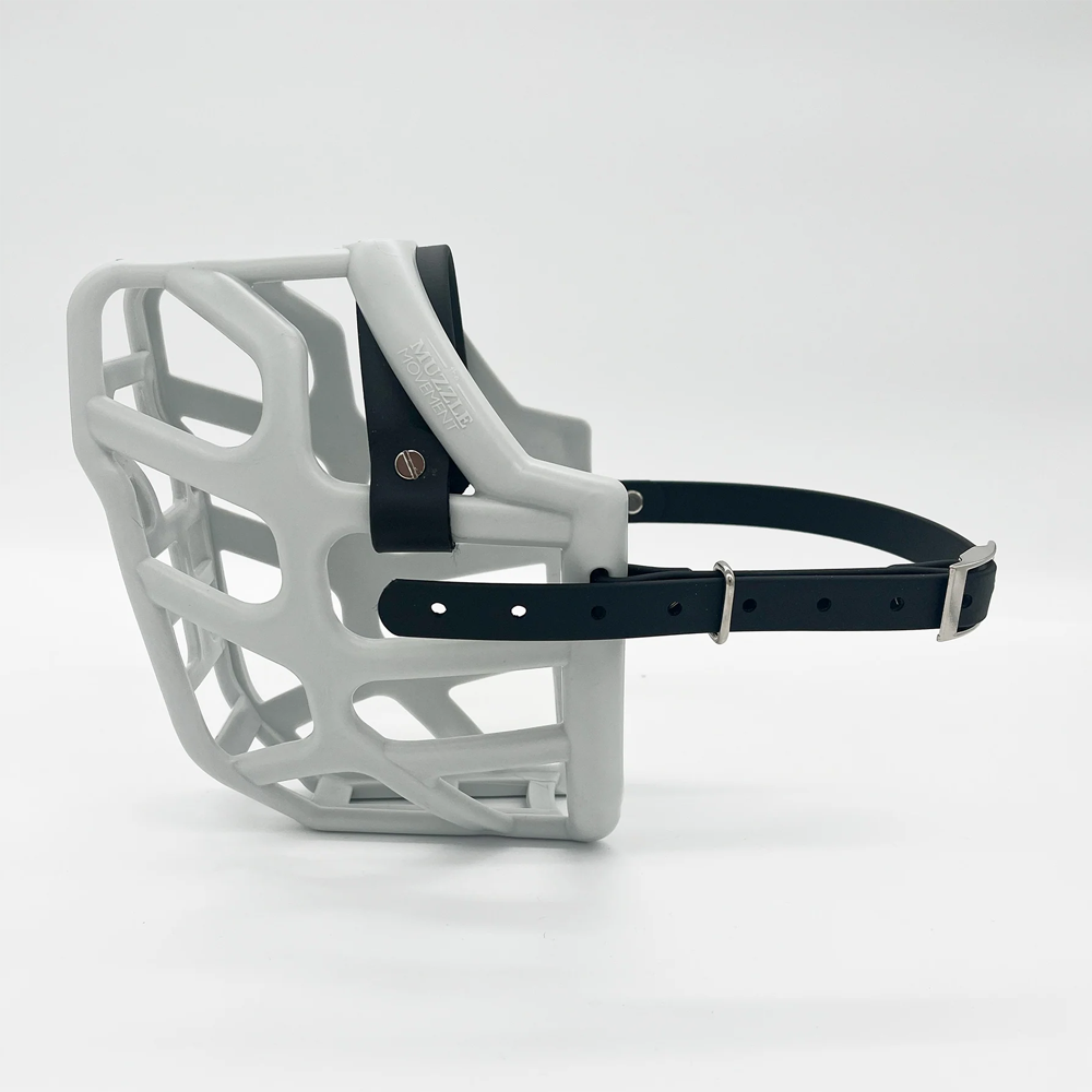 Todos os açaimes vêm de fábrica com as fivelas em preto, uma faixa nasal e uma tira de pescoço ajustável com fecho de fivela. As tiras são presas com parafusos ajustaveis (chicago screws) o que significa que podem ser removidas ou recolocadas sem as cortar.