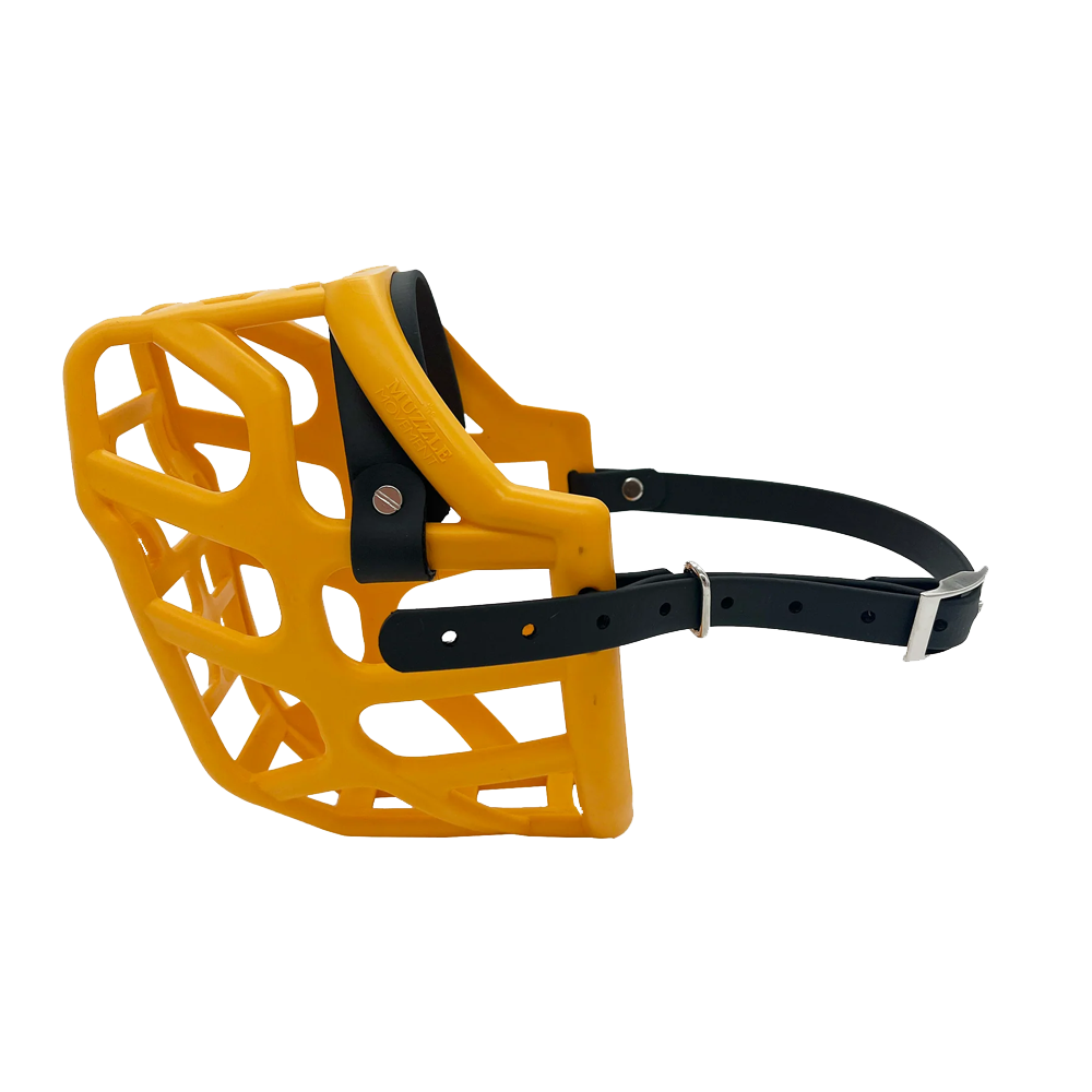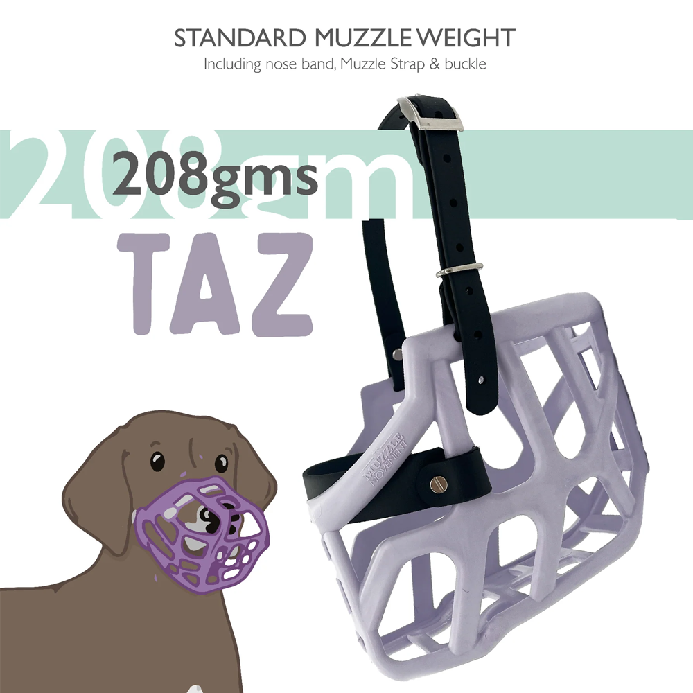 A diferença entre o açaime Taz e o Taz* é a largura da faixa nasal. O Taz* tem uma banda nasal Biothane com 38 mm de espessura que, quando combinada com o cesto Taz, pode acrescentar algum comprimento para os cães que precisam. A parte do cesto do açaime permanece a mesma. A faixa Taz* é vendida em separado aqui.