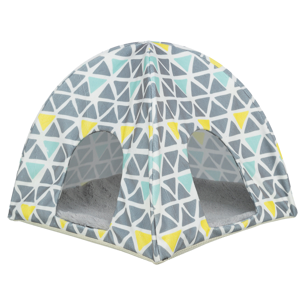• Tenda triangular colorida para animais de companhia com duas aberturas