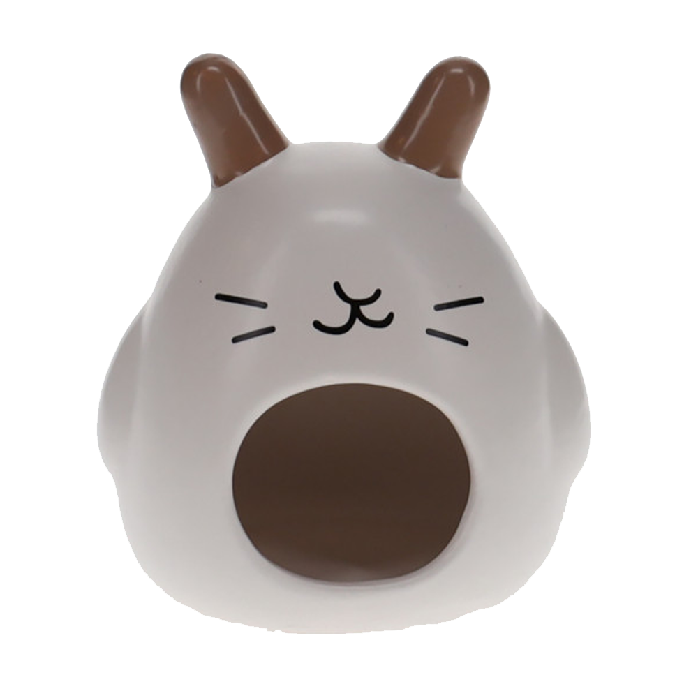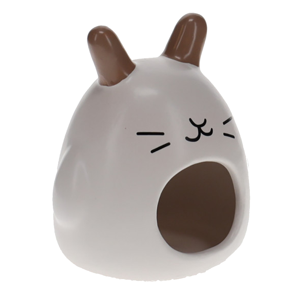 Casa em forma de coelho, feita em cerâmica vitrificada de alta qualidade, forte e resistente. Este produto é ideal para pequenos roedores como murganhos e hamsters anões. Lavável na máquina de lavar louça.