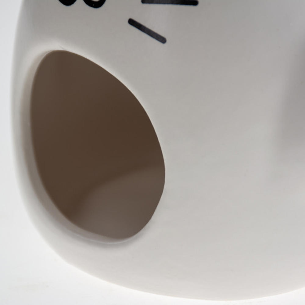 • Casinha cerâmica branca com orelhas castanhas e rosto desenhado para pequenos animais