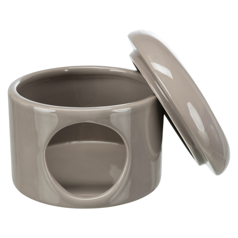 • Casota cilíndrica cinzenta em cerâmica para pequenos animais