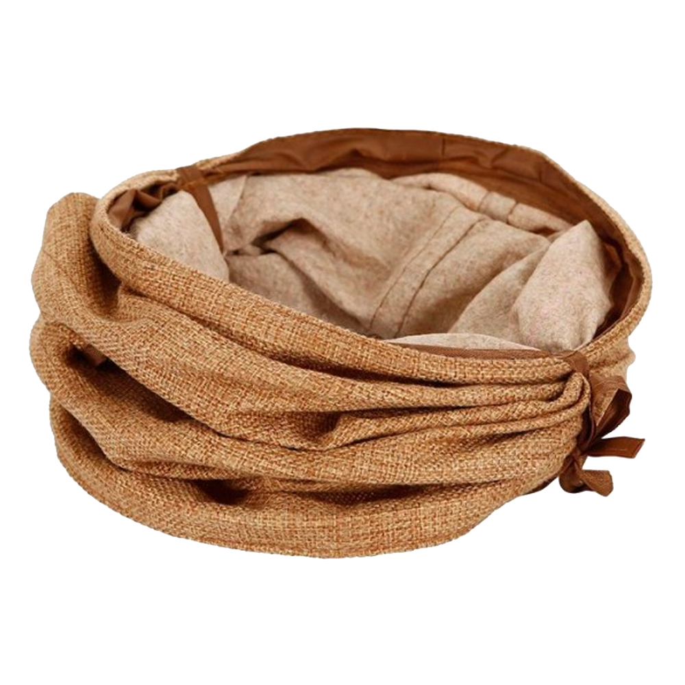 • Cesta de pão redonda em tecido bege com forro macio e design pregueado.