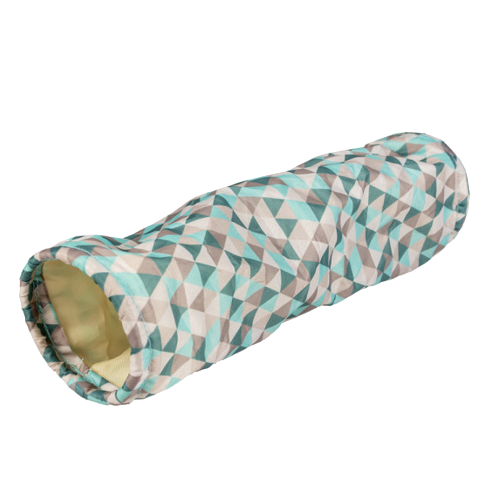 • Túnel para animais de estimação com padrão geométrico azul e amarelo